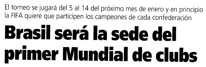 Manchete do Mundo Deportivo de 8/6/1999, anunciando o Brasil como sede do Mundial de Clubes 2000 |