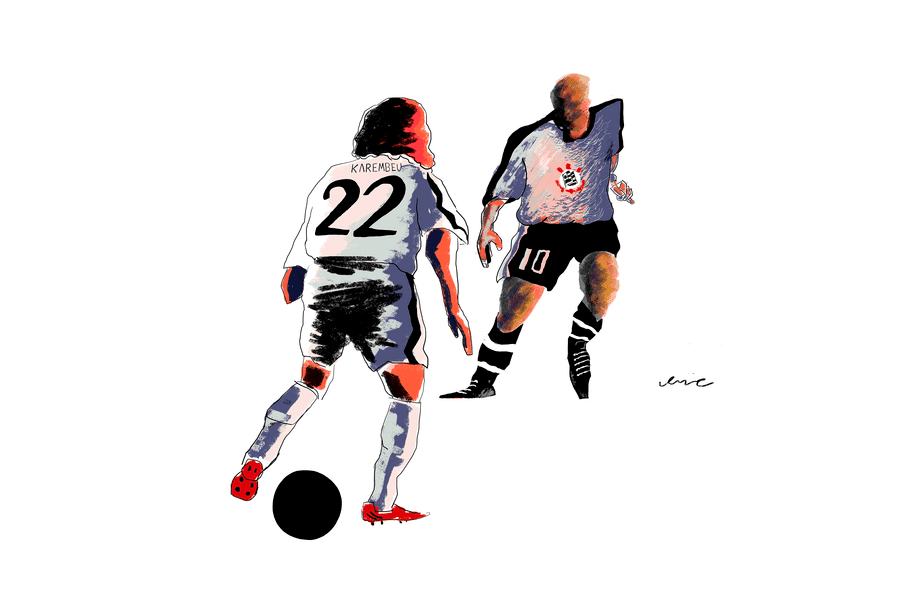 Edilson dribla Karembeu, ilustração de Eric Baket