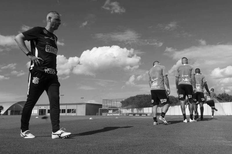 Tiago Nunes em treino do Corinthians: remando contra uma maré? (Foto: Agência Corinthians) |