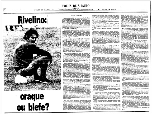 Ele foi acusado de ter pipocado. E infelizmente a própria diretoria, pressionada, entrou na onda. Para dar uma resposta, negociou Rivellino com o Fluminense. Ele saiu do time que “aprendeu a amar”, como disse em entrevista em 2010, em meio à revolta e frustração: com o nome manchado, sem ter a chance de responder em campo às acusações, e sem ter conseguido ser campeão paulista pelo clube.